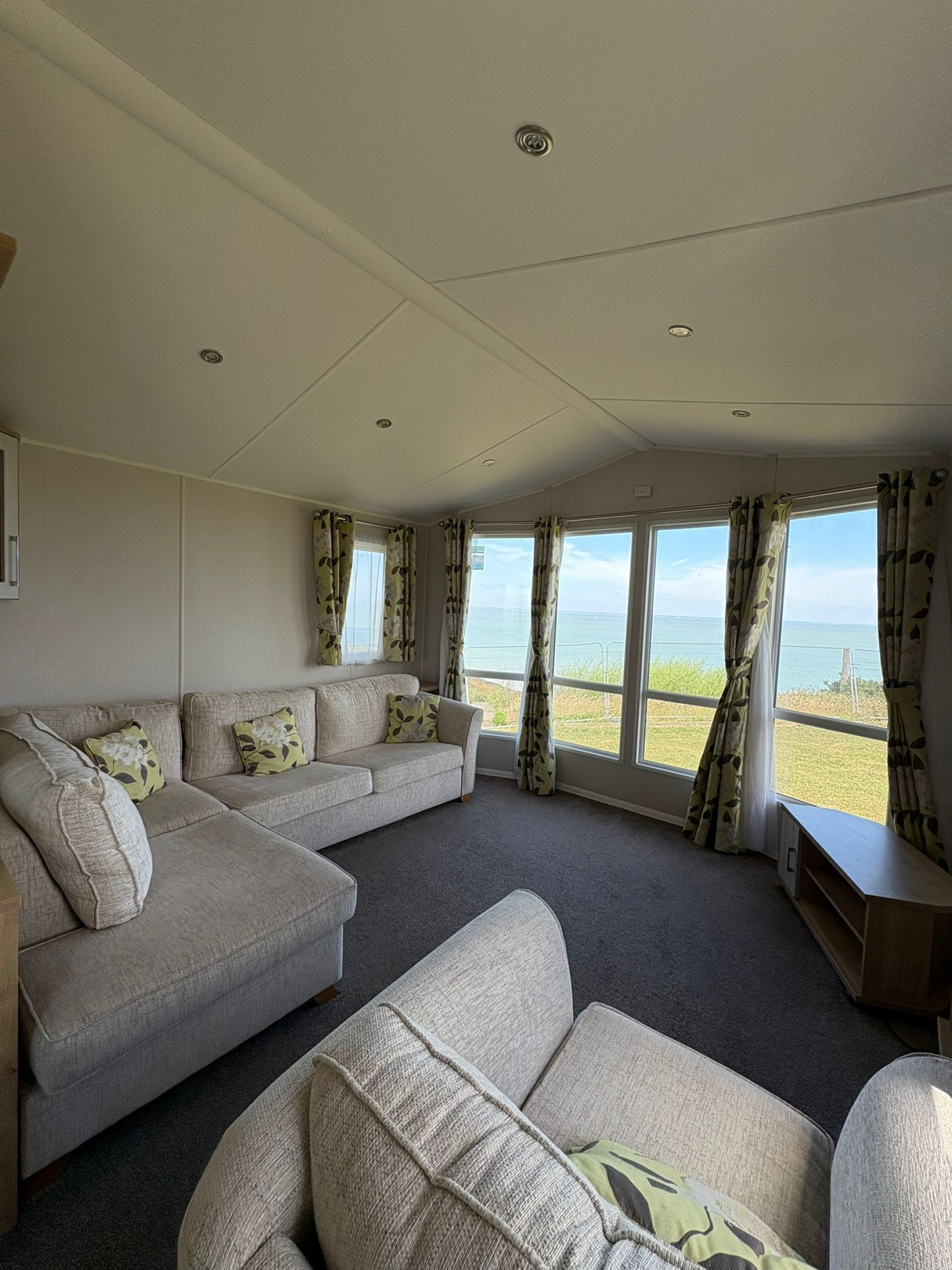 The comfortable lounge with large L shaped seating and pull-out bed, separate easy chair and feature electric fire gives you a real home from home feeling.